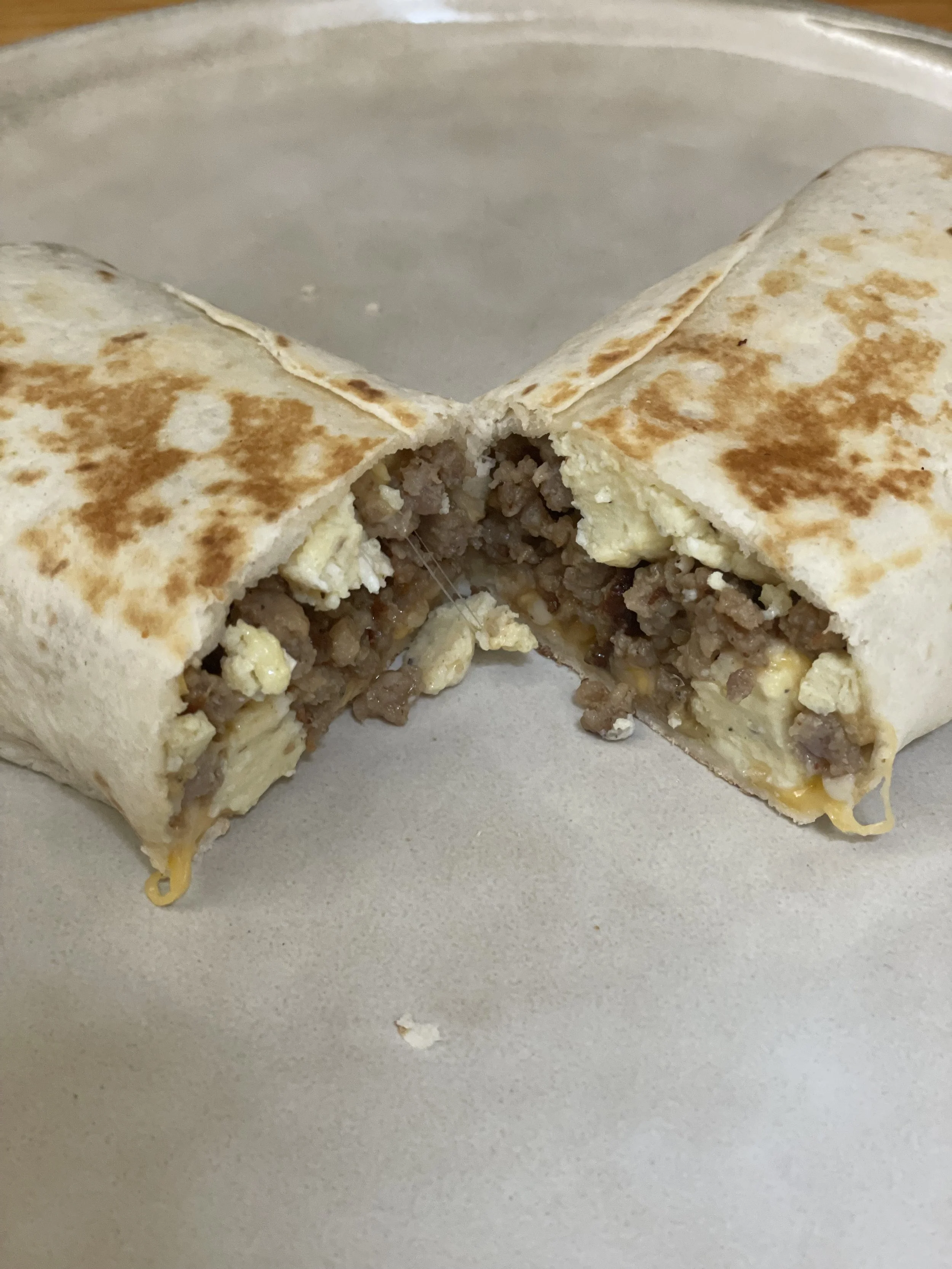 Need something savory to kick start your day? Grab a tasty burrito with that fresh cup of coffee.